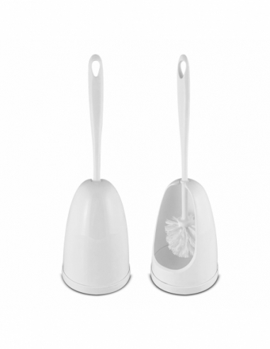 Portascopino standard da appoggio in plastica bianca. Corpo in plastica bianco. Spazzolino con setole bianche
