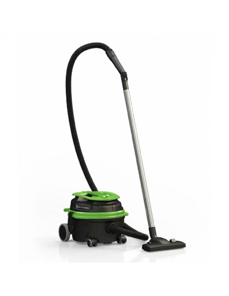 Aspirapolvere professionale silenziato ideale per hotel, B&B, residence e strutture ricettive, progettato per garantire elevate prestazioni con un basso livello di rumorosità: pressione sonora 62dB, inferiore a 53 dB in modalità ECO e potenza sonora 77dB, inferiore a 65 dB in modalità ECO, ideale per pulizie diurne. Dotato di motore da 870 W, regolatore di velocità e rumorosità e indicatore di sacco pieno, assicura un’aspirazione potente e costante grazie a una depressione di 2420 mmH₂O e a una portata d’aria di 183 m³/h. Capacità fusto 12 litri. Fornito completo di tubo flessibile, prolunga, prolunga curva, spazzola per tappeti, sacco filtro, lancia piatta, pennello e bocchettina.