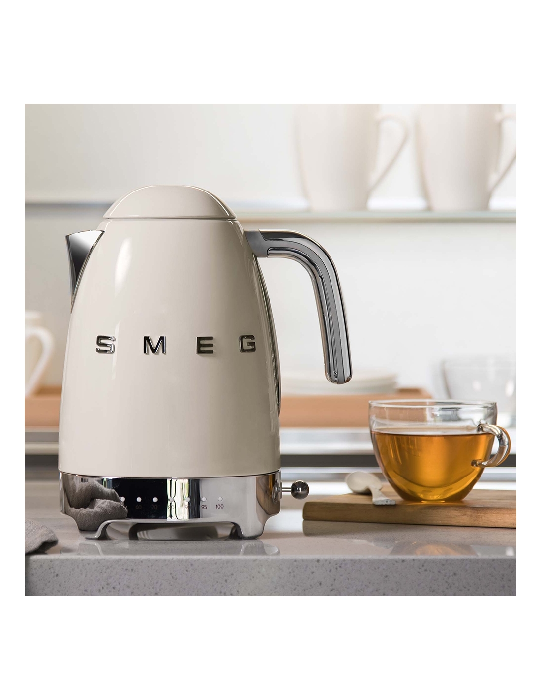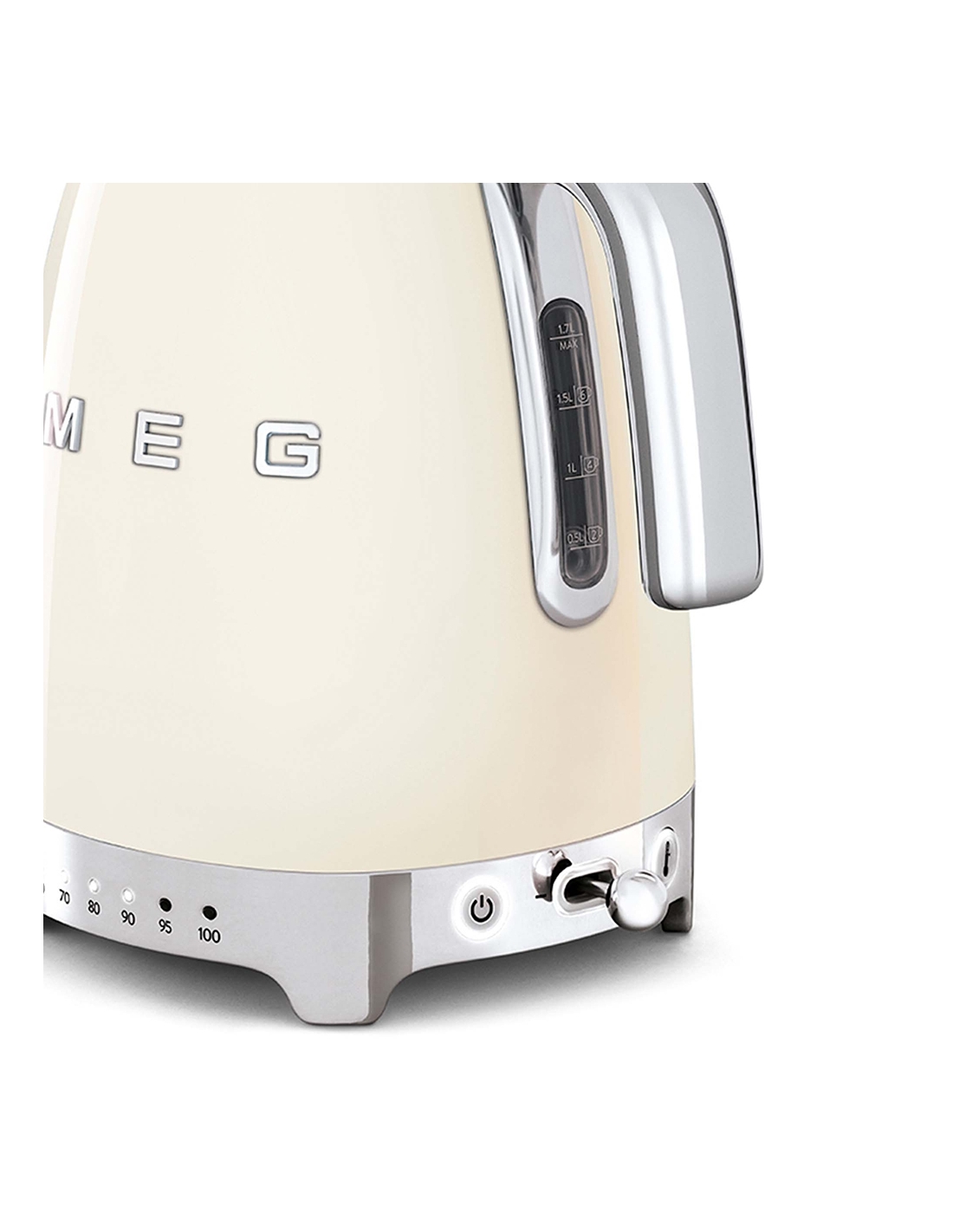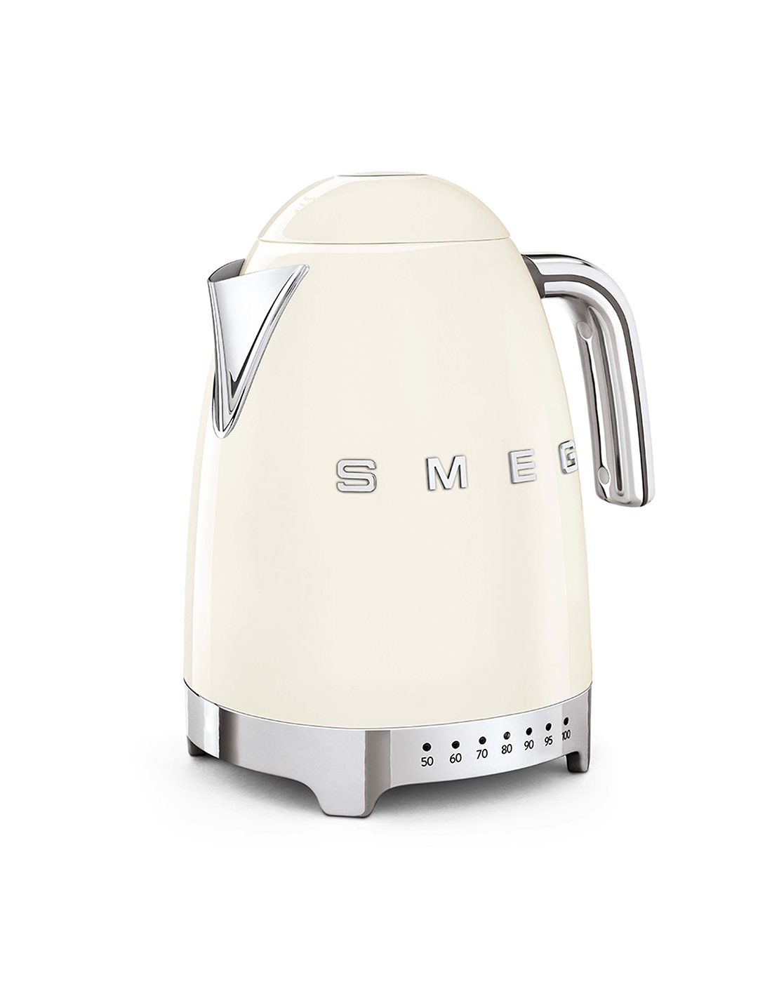 Bollitore 50’ Style panna lucido a temperatura variabile con corpo e coperchio in acciaio inox, base e maniglia in plastica, beccuccio in acciaio lucido. Apertura soft opening. Capacità 1,7 lt / 7 tazze. Autospegnimento di sicurezza a temperatura raggiunta. Regolabile su vari livelli di temperatura da 50° a 100°. Base antiscivolo.