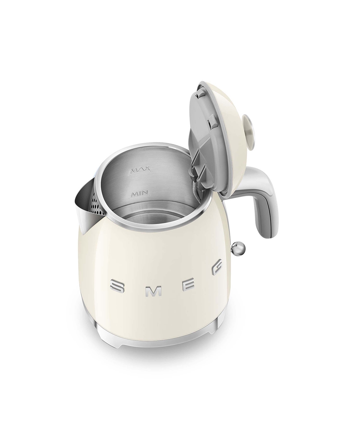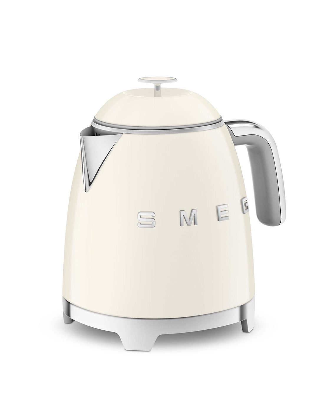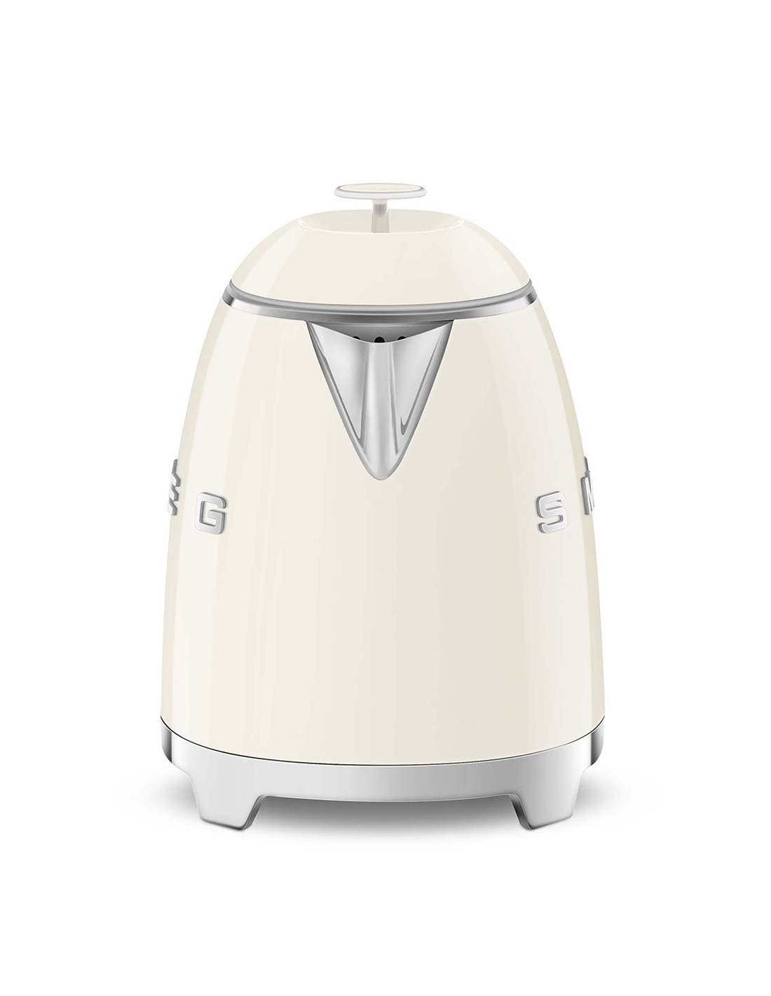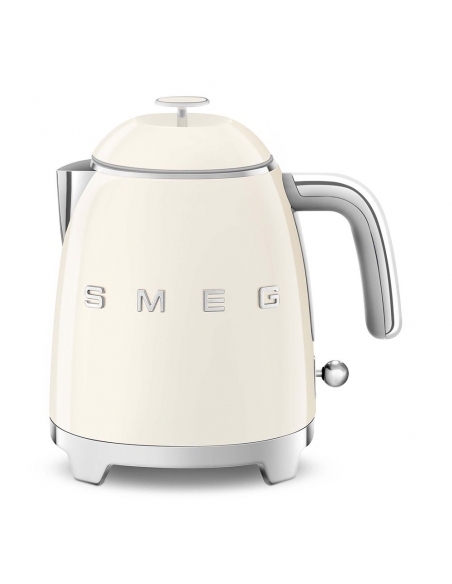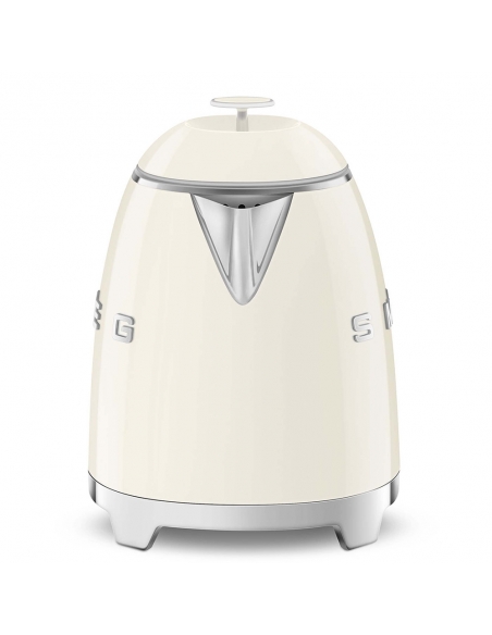 Mini bollitore 50’ Style panna lucido. Corpo e coperchio in plastica, corpo interno in acciaio inox, base e maniglia in plastica, beccuccio in acciaio lucido. Capacità 0,8 lt / 3 tazze. Autospegnimento di sicurezza a 100°. Base antiscivolo con connessione a 360 °.