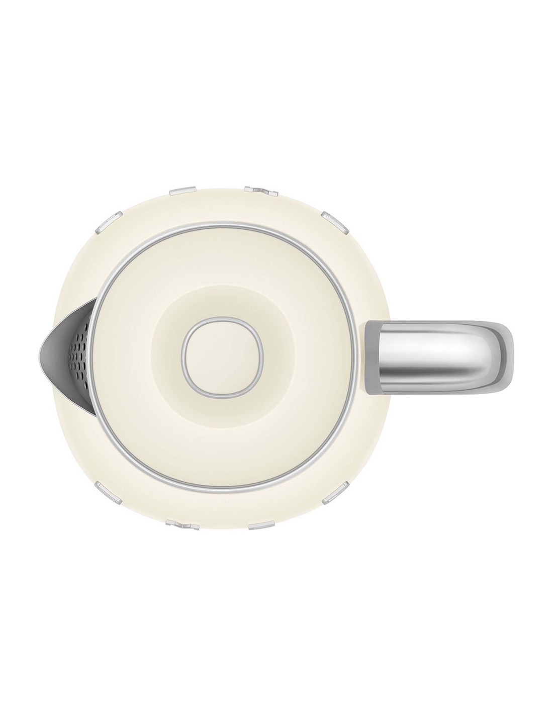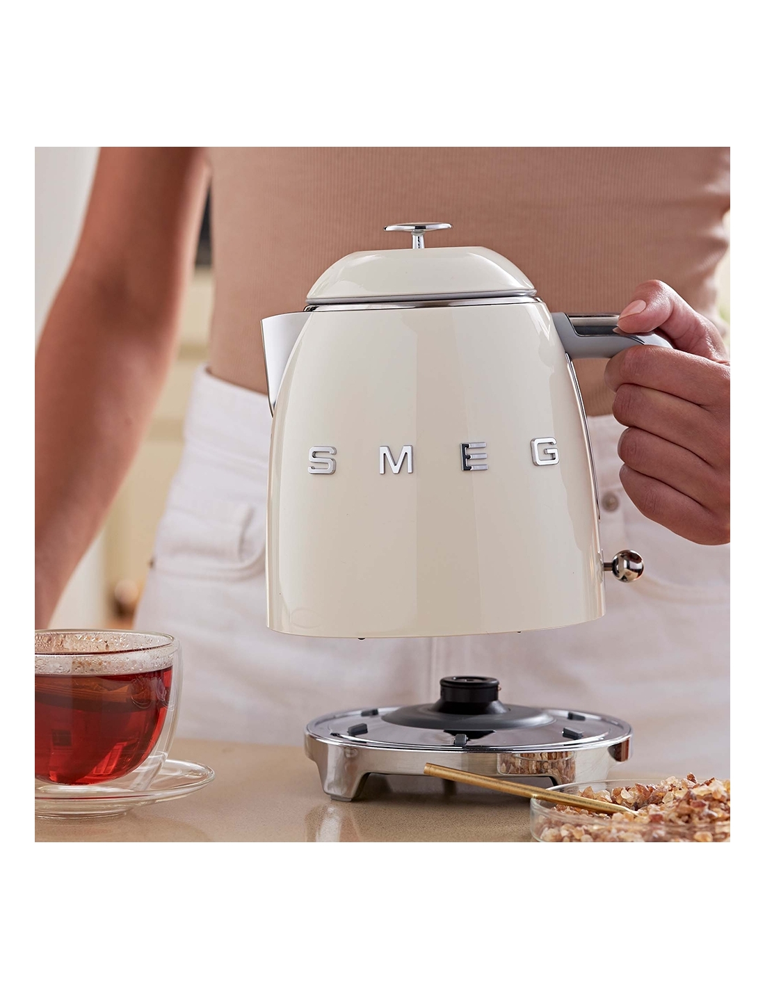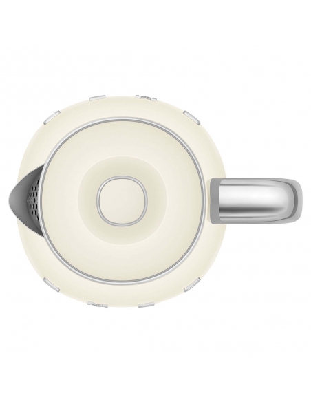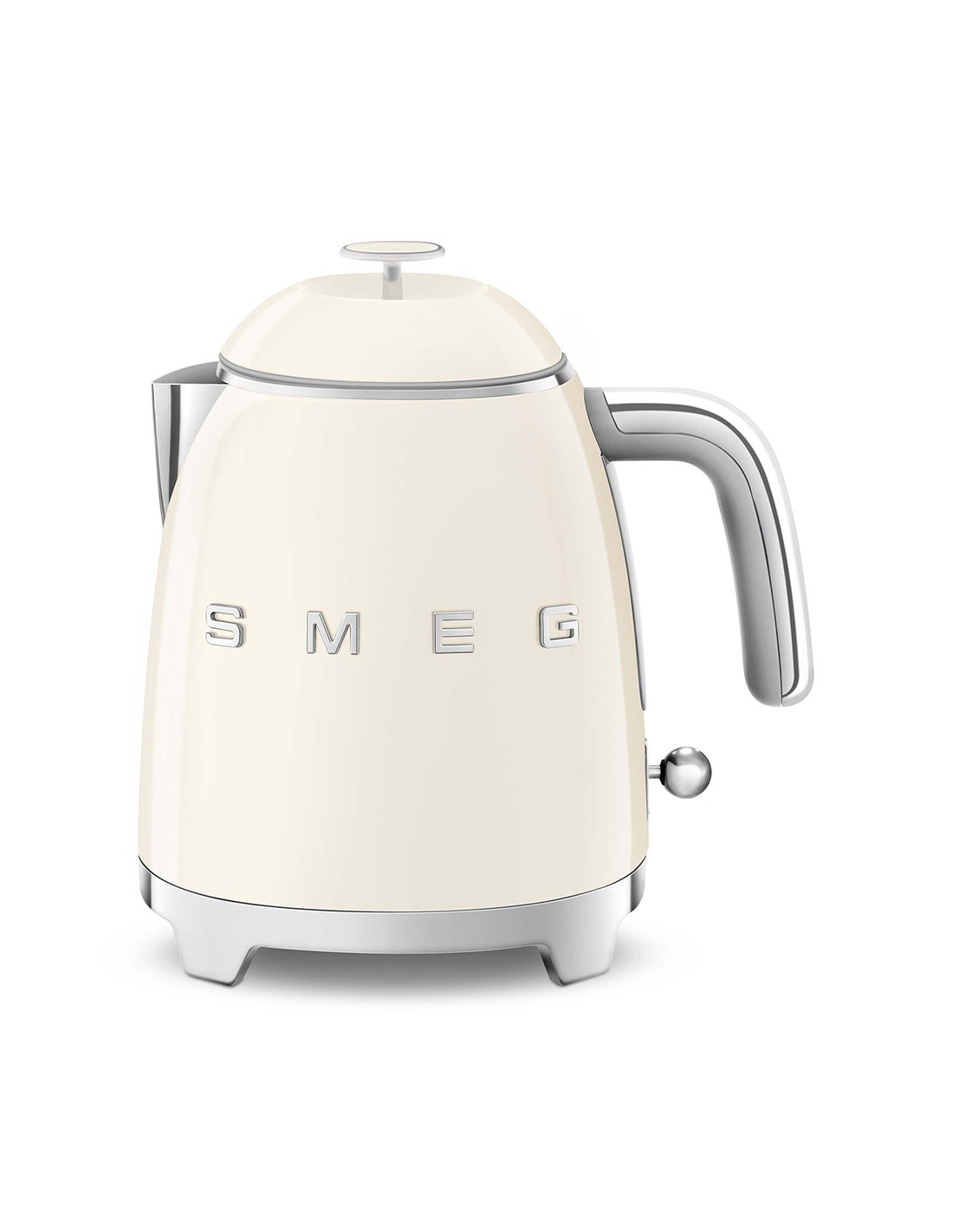 Mini bollitore 50’ Style panna lucido. Corpo e coperchio in plastica, corpo interno in acciaio inox, base e maniglia in plastica, beccuccio in acciaio lucido. Capacità 0,8 lt / 3 tazze. Autospegnimento di sicurezza a 100°. Base antiscivolo con connessione a 360 °.