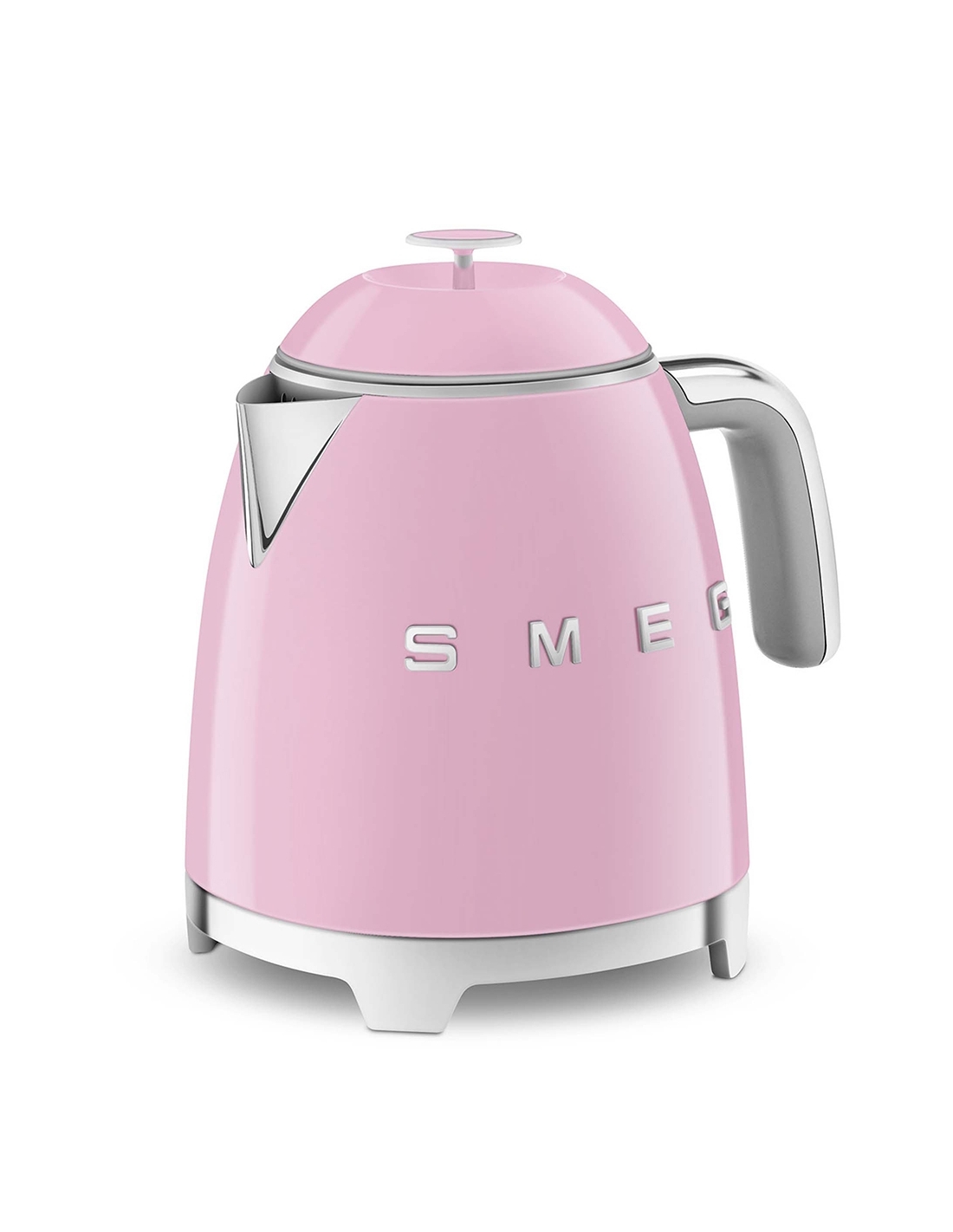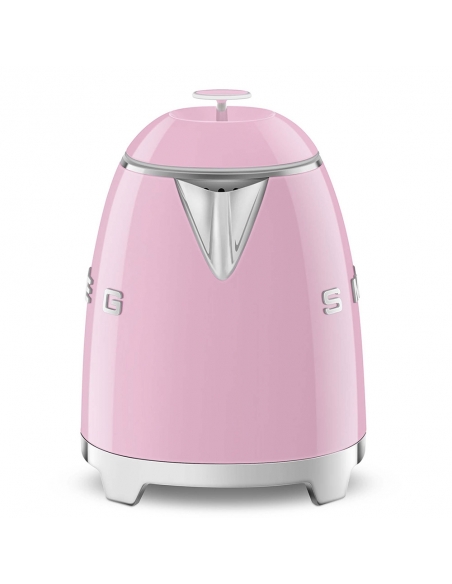 Mini bollitore 50’ Style rosa lucido. Corpo e coperchio in plastica, corpo interno in acciaio inox, base e maniglia in plastica, beccuccio in acciaio lucido. Capacità 0,8 lt / 3 tazze. Autospegnimento di sicurezza a 100°. Base antiscivolo con connessione a 360 °.
