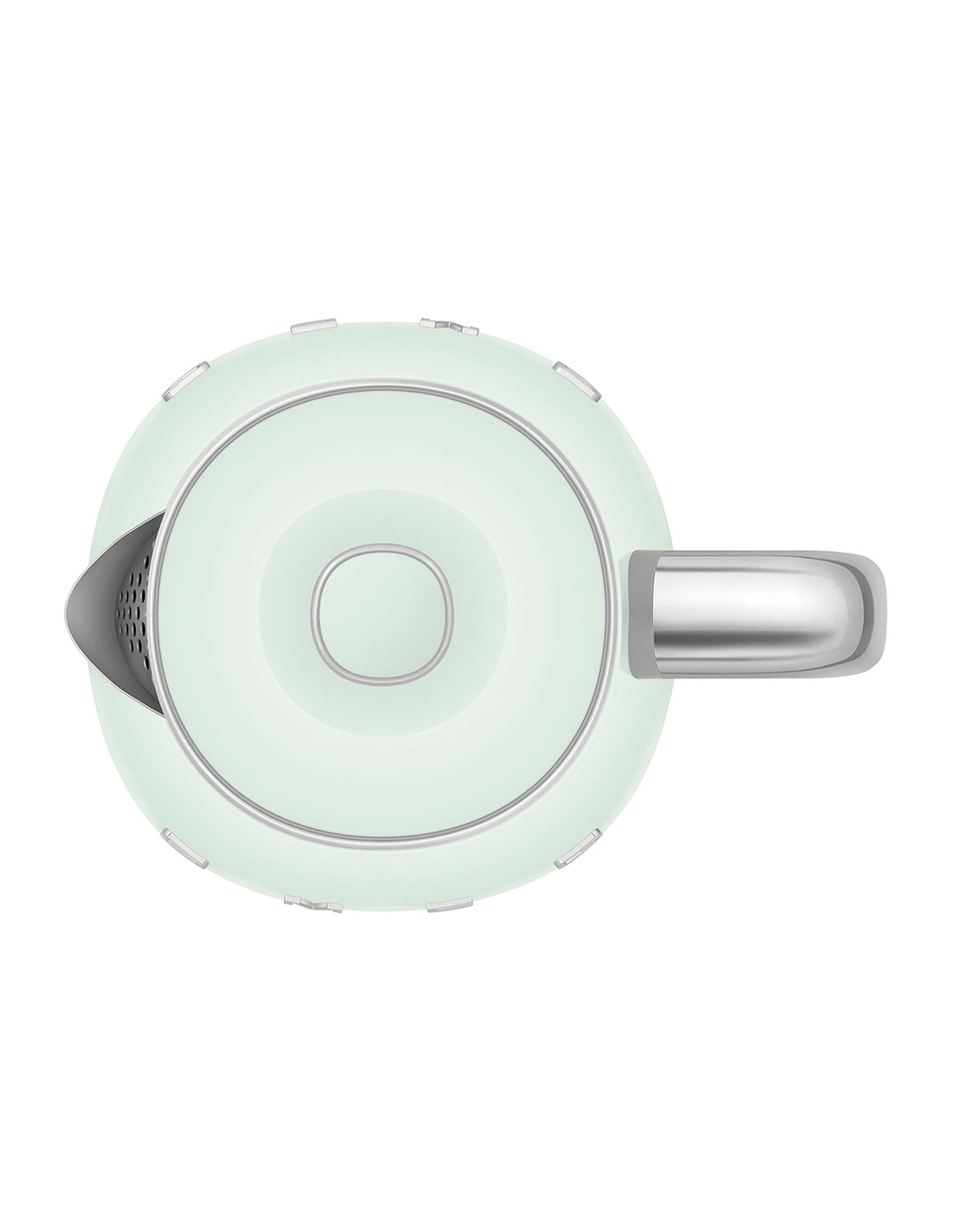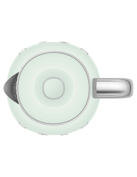 Mini bollitore 50’ Style verde lucido. Corpo e coperchio in plastica, corpo interno in acciaio inox, base e maniglia in plastica, beccuccio in acciaio lucido. Capacità 0,8 lt / 3 tazze. Autospegnimento di sicurezza a 100°. Base antiscivolo con connessione a 360 °.