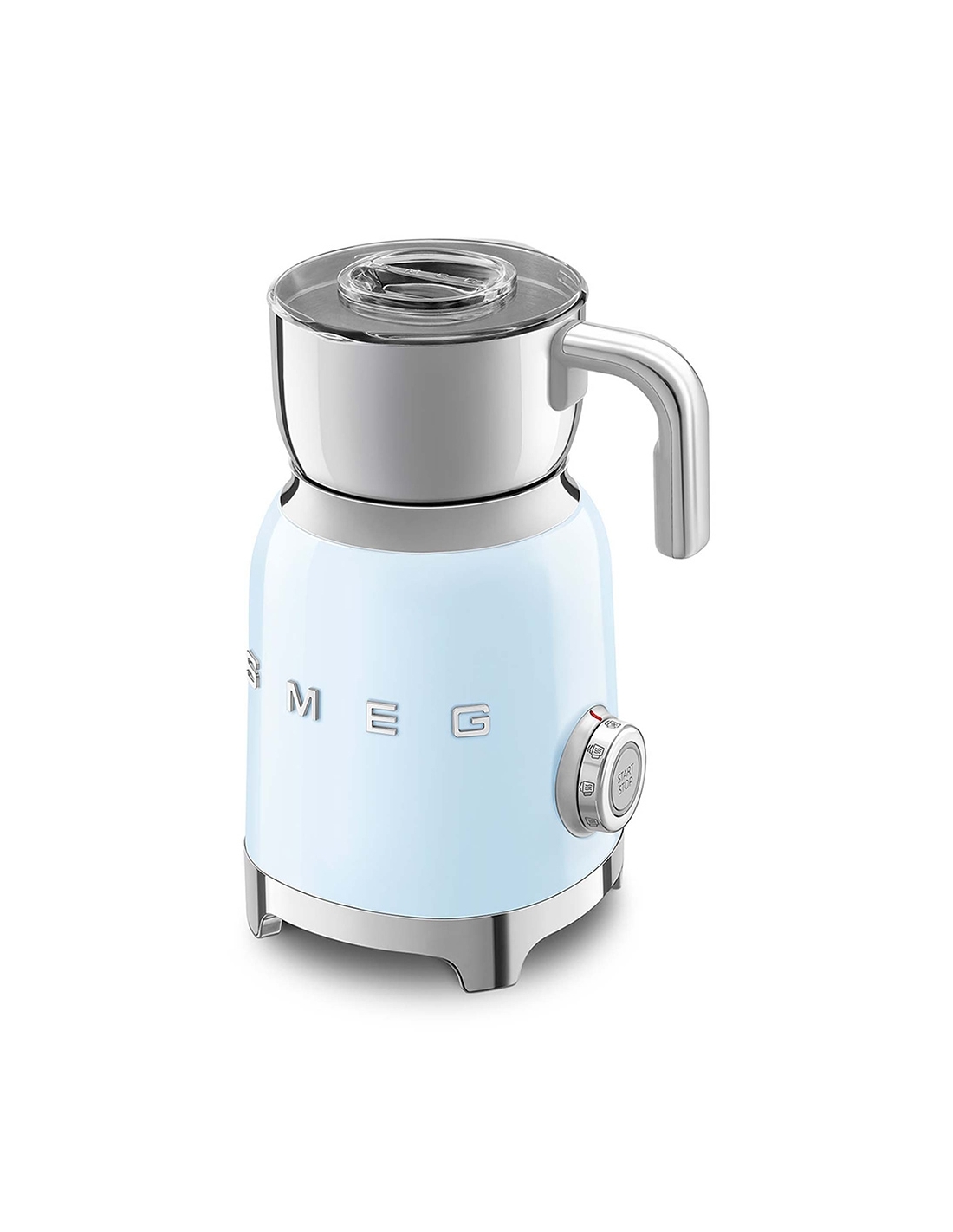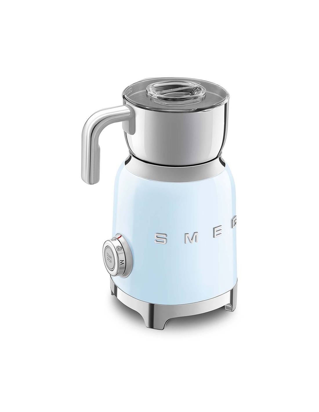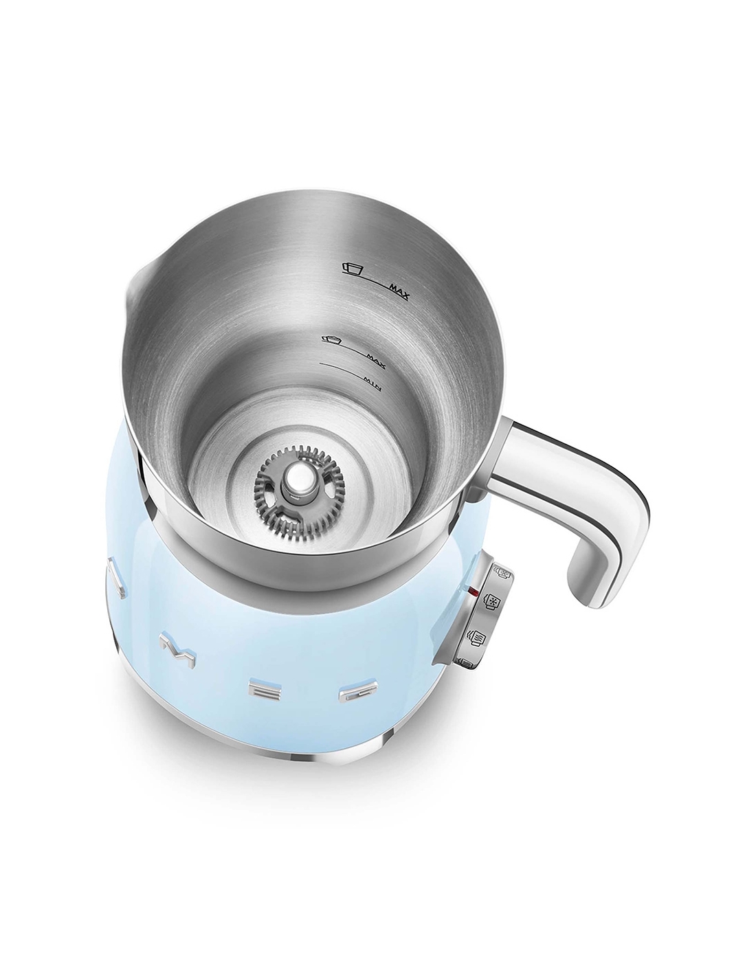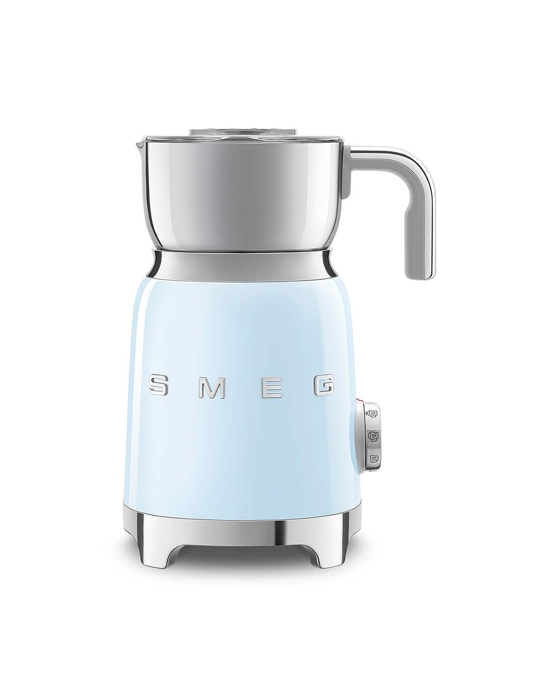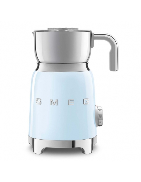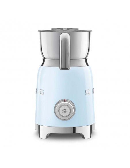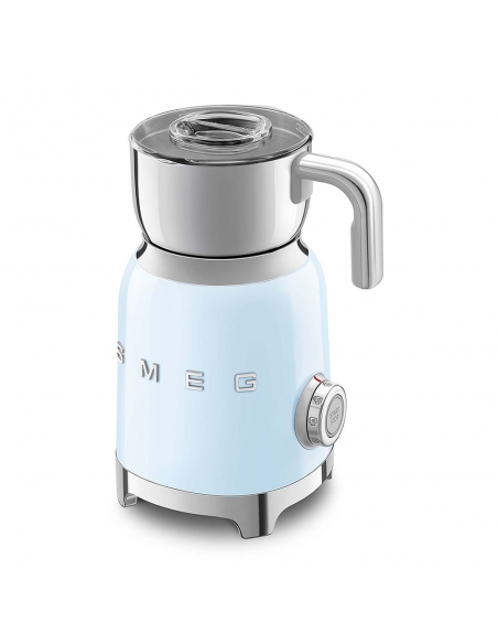 Montalatte a induzione 50’ Style azzurro lucido. Corpo in acciaio inox, maniglia in plastica e acciaio, base in plastica. Caraffa in acciaio inox con capacità di riscaldamento 600 ml / 2,5 tazze e di montatura latte 250 ml / 1 tazza. In dotazione frusta liscia per funzione latte caldo e frusta dentellata per funzione montalatte. Autospegnimento di sicurezza.
