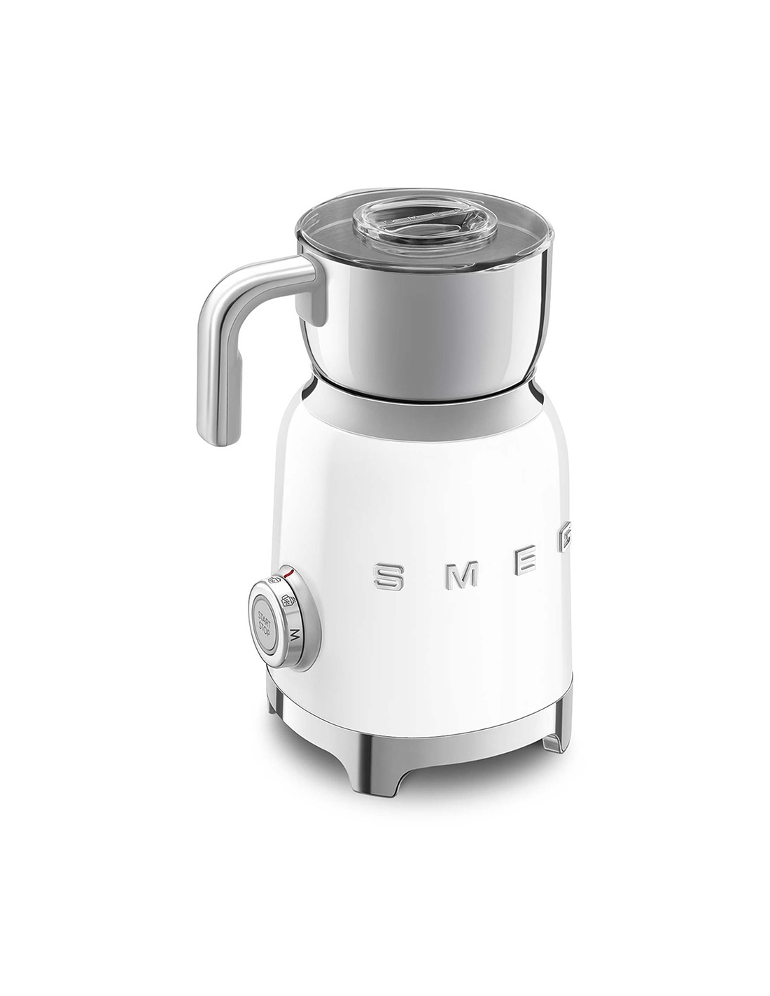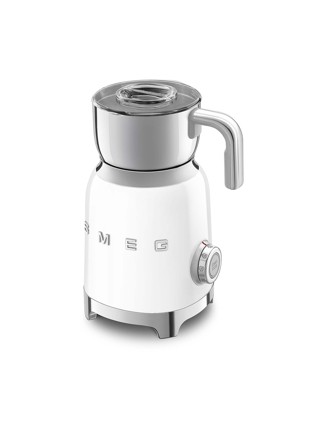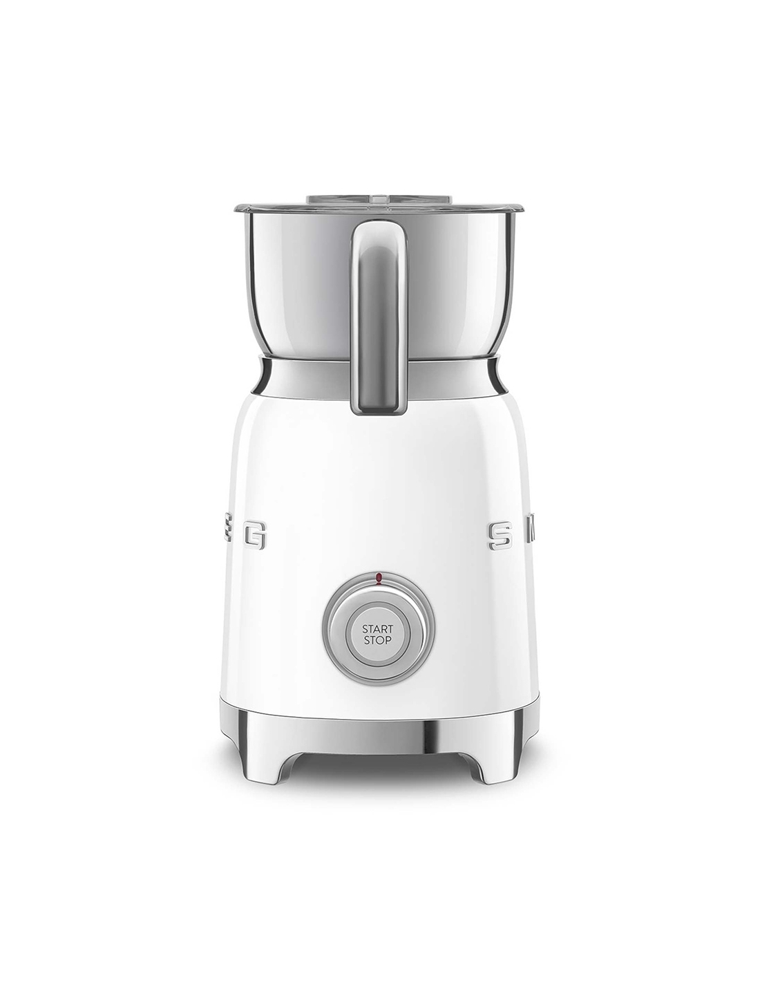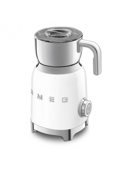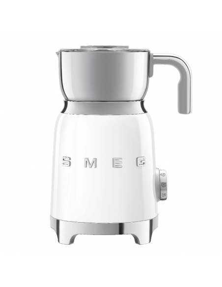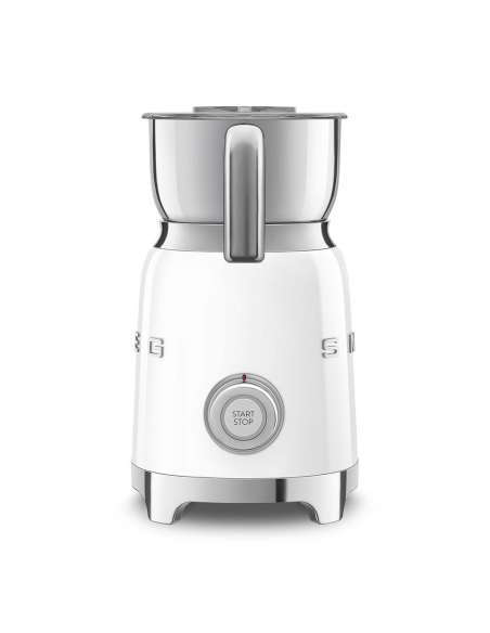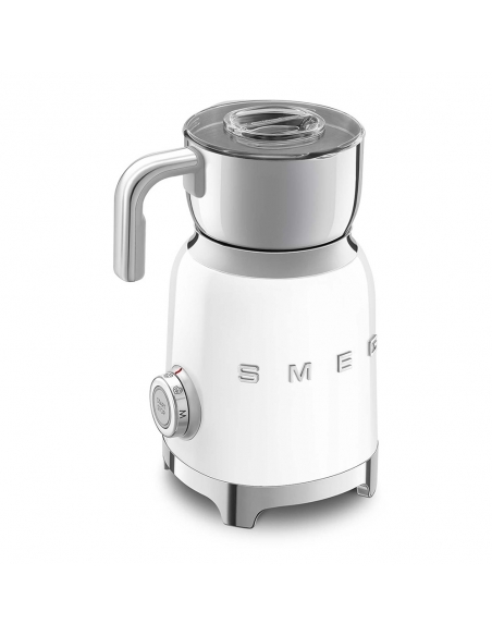 Montalatte a induzione 50’ Style bianco lucido. Corpo in acciaio inox, maniglia in plastica e acciaio, base in plastica. Caraffa in acciaio inox con capacità di riscaldamento 600 ml / 2,5 tazze e di montatura latte 250 ml / 1 tazza. In dotazione frusta liscia per funzione latte caldo e frusta dentellata per funzione montalatte. Autospegnimento di sicurezza.