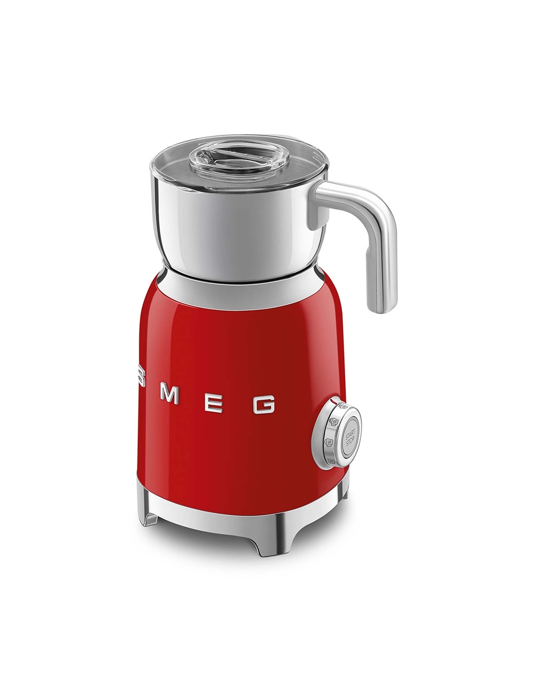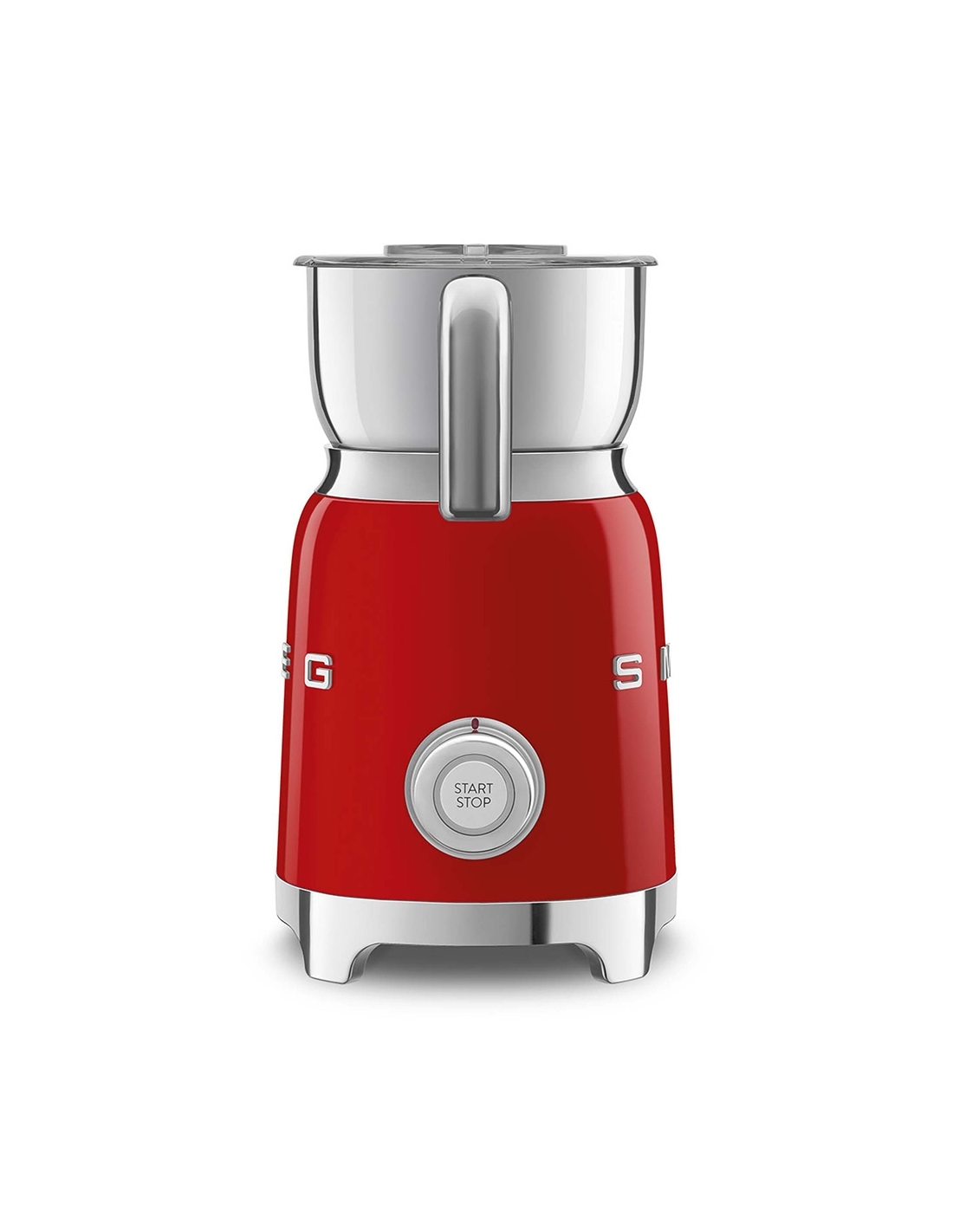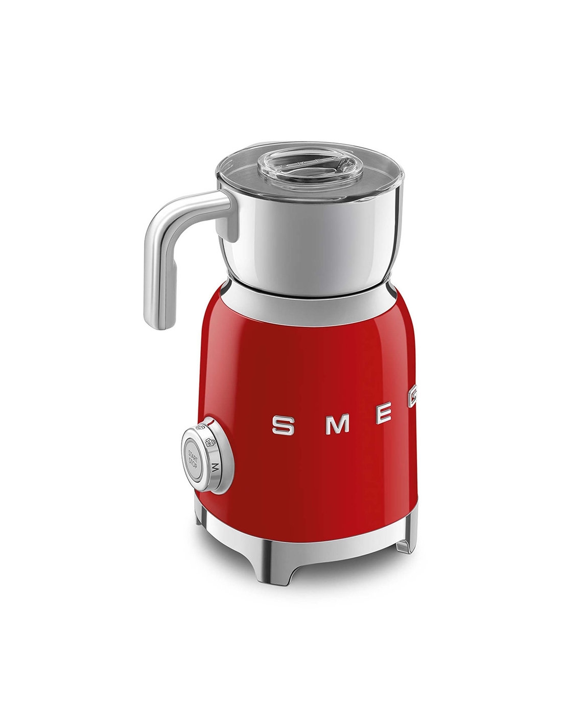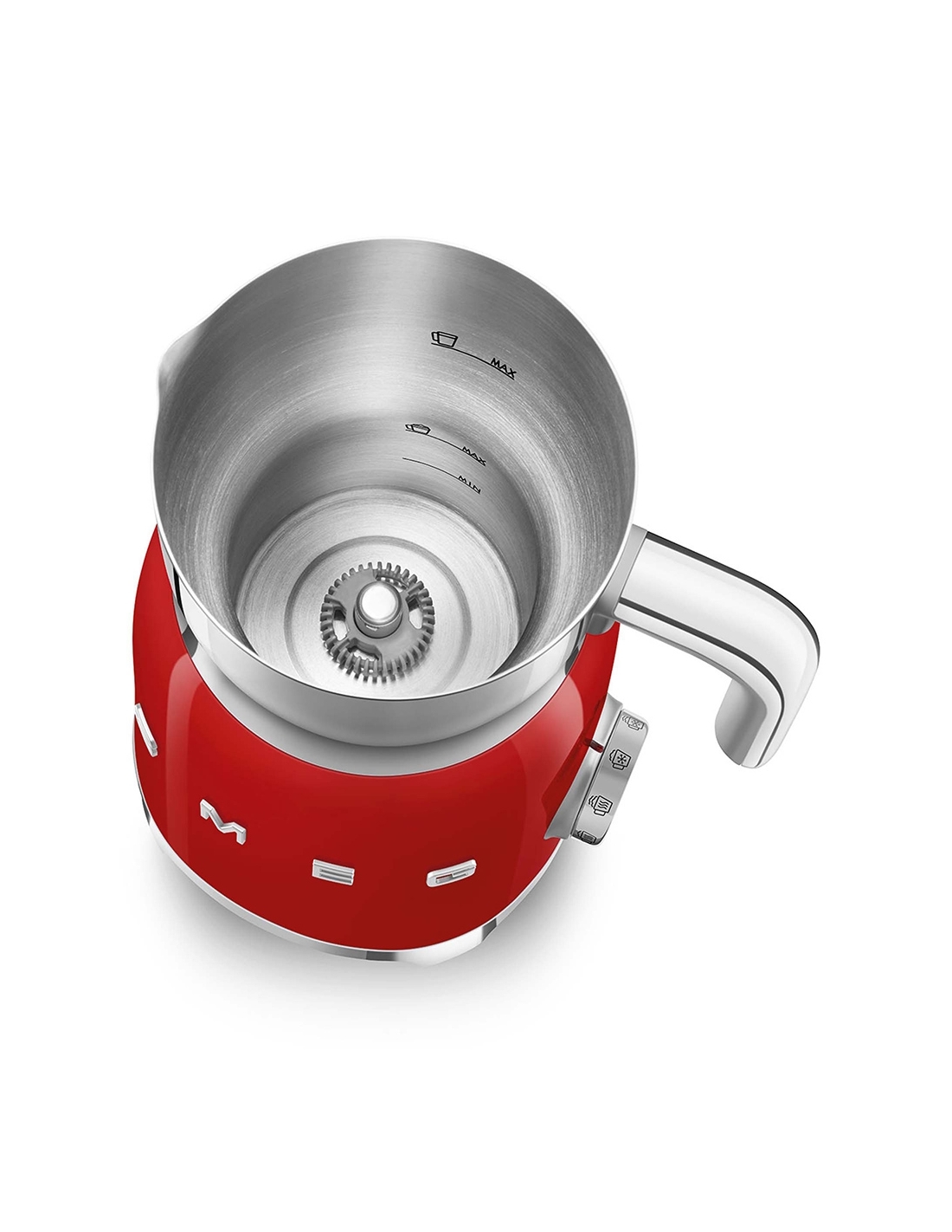 Montalatte a induzione 50’ Style rosso lucido. Corpo in acciaio inox, maniglia in plastica e acciaio, base in plastica. Caraffa in acciaio inox con capacità di riscaldamento 600 ml / 2,5 tazze e di montatura latte 250 ml / 1 tazza. In dotazione frusta liscia per funzione latte caldo e frusta dentellata per funzione montalatte. Autospegnimento di sicurezza.