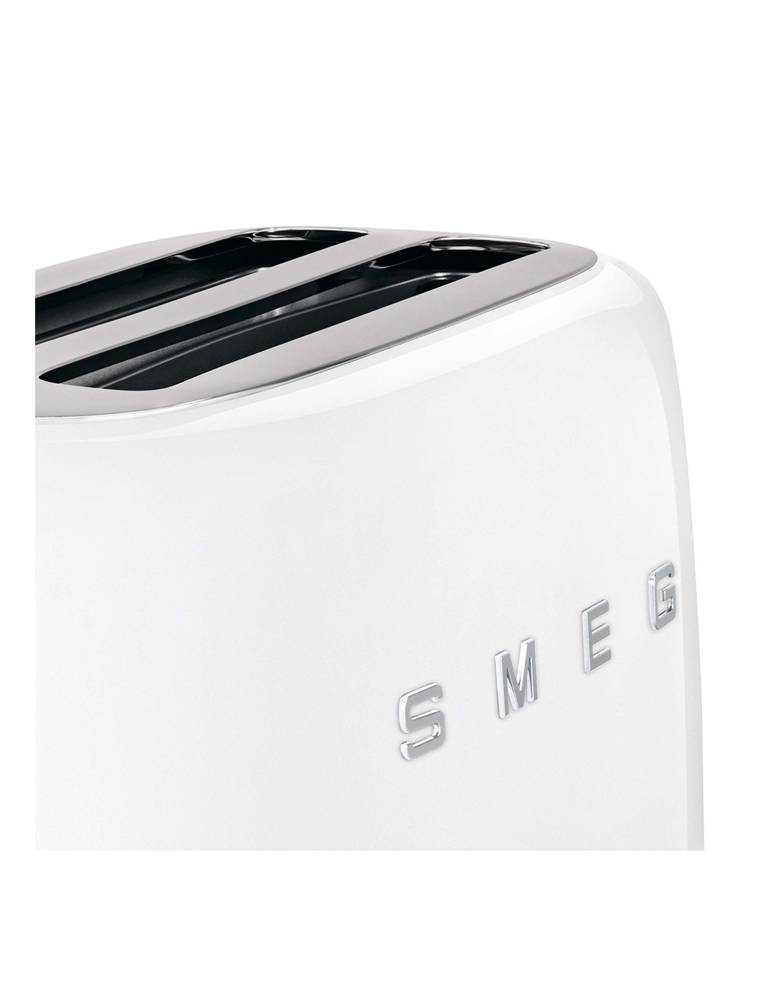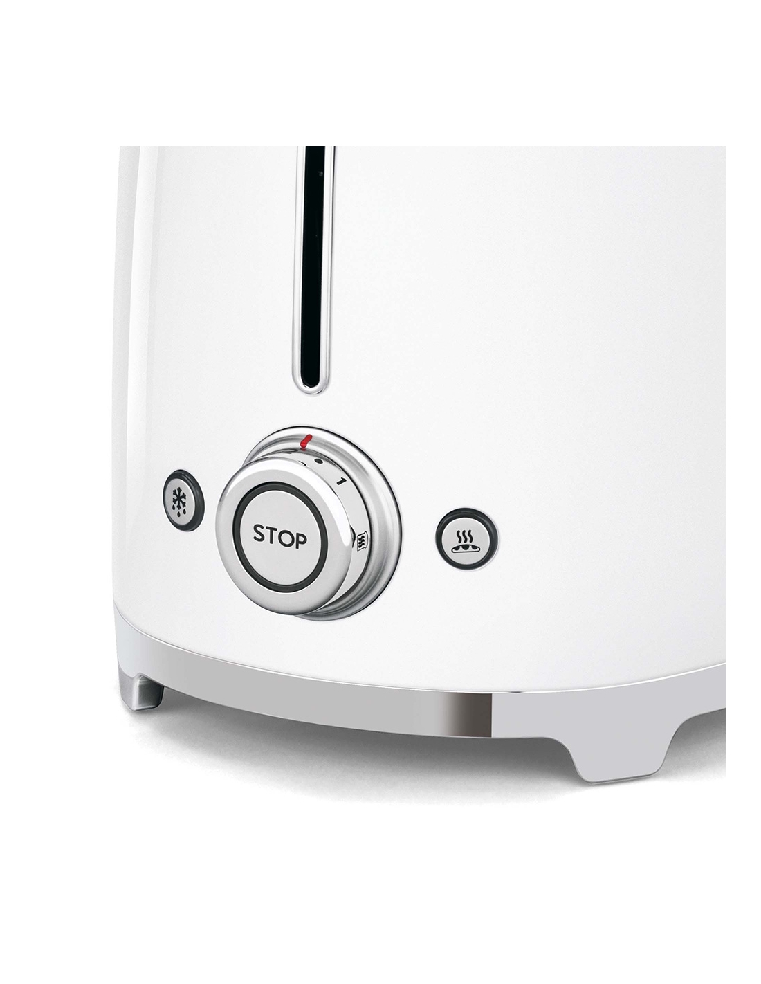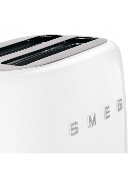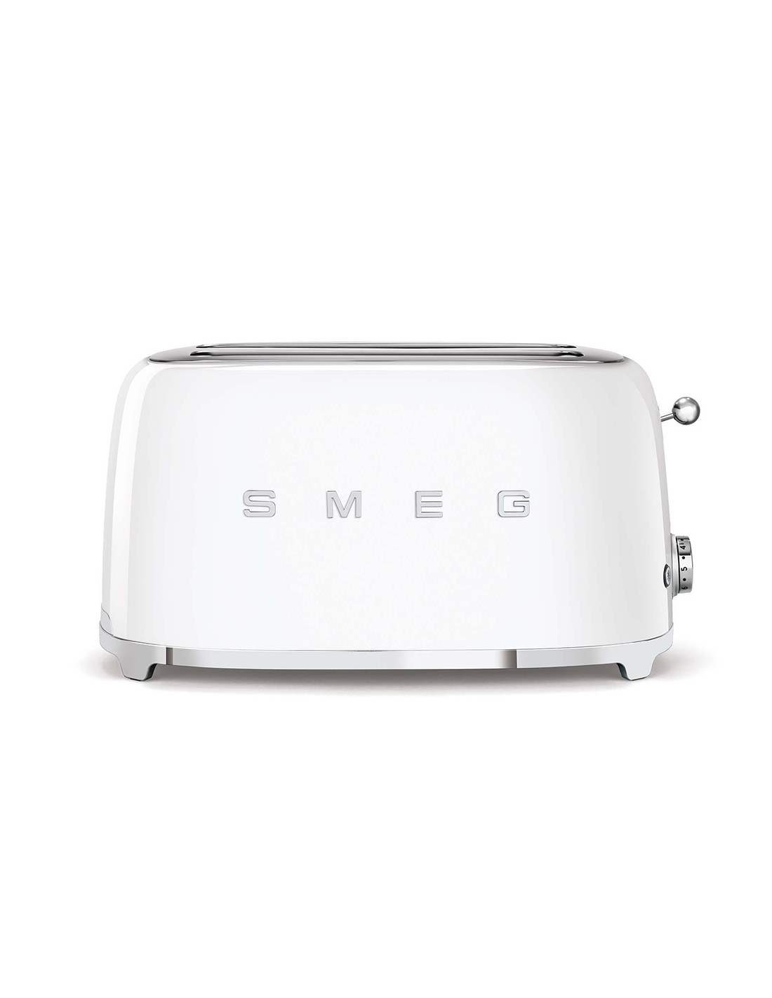 Tostapane 4x2 fette 50’ Style bianco lucido. Corpo e top in acciaio inox, base antiscivolo in plastica. Cassettino raccoglibriciole in acciaio inox. Attivazione con leva a scorrimento. Pulsanti e manopola retroilluminati. Lunghezza scomparto 36 cm. 6 livelli di brunitura e 3 diverse funzioni: riscaldamento, scongelamento e bagel. Espulsione automatica a fine ciclo.