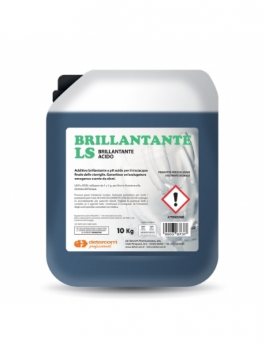 Additivo brillantante acido per il risciacquo finale delle stoviglie in macchine lavastoviglie ad uso professionale. Evita la formazione di macchie ed aloni su stoviglie e bicchieri. pH 3 Idoneo piani H.A.C.C.P.Tanica da 10 kg