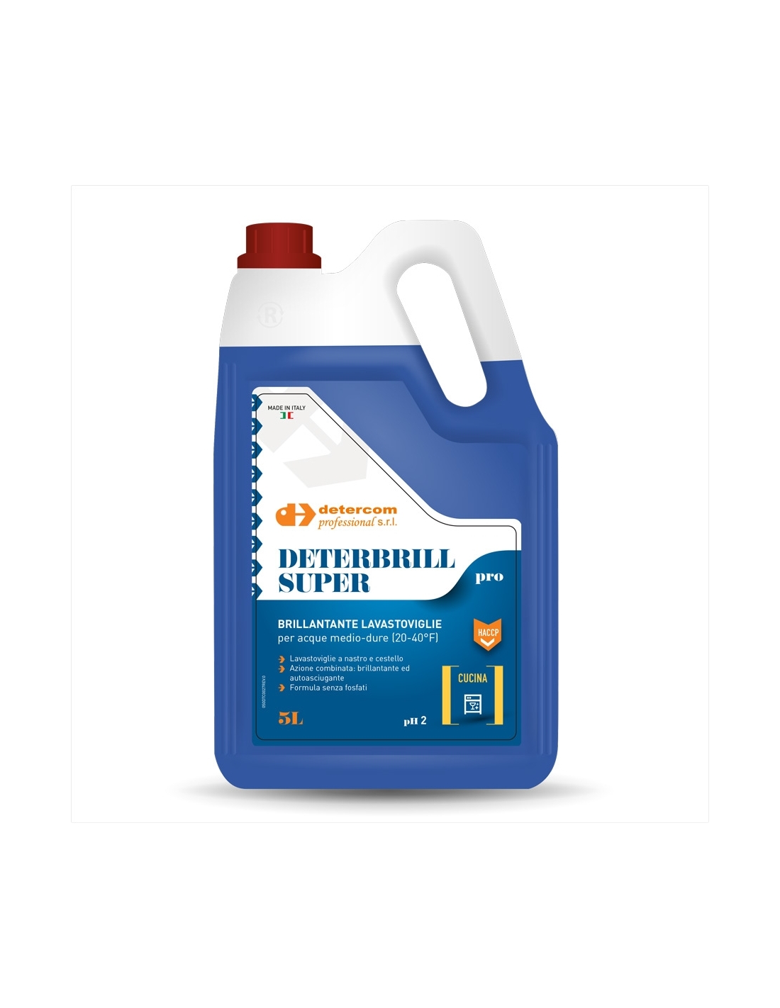 Brillantante acido ad alta concentrazione, indicato per zone con acqua dura. Grazie alla sua azione brillantante e autoasciugante, previene efficacemente la formazione di macchie calcaree e aloni opachi su bicchieri, posate e stoviglie. Tanica da 5.000 ml.
