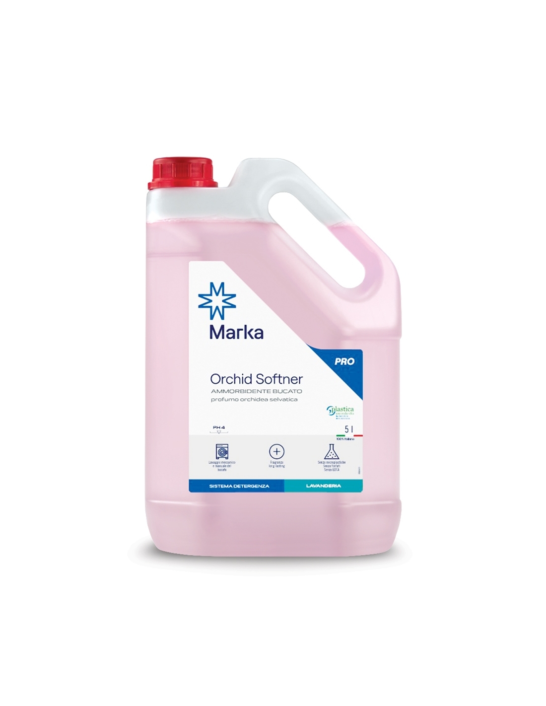 Ammorbidente concentrato con profumazione all'orchidea selvatica. Prodotto pensato per garantire morbidezza al bucato ed un piacevole ed intenso profumo, anche ai capi asciutti. La sua formula speciale, priva di fosfati, agisce efficacemente anche a bassi dosaggi, proteggendo le fibre e facilitando la stiratura. Perfetto per il lavaggio manuale o in lavatrice, offre risultati eccellenti abbinato al detersivo Orchid Enzy Wash (art 3830). Tanica da 5 kg.