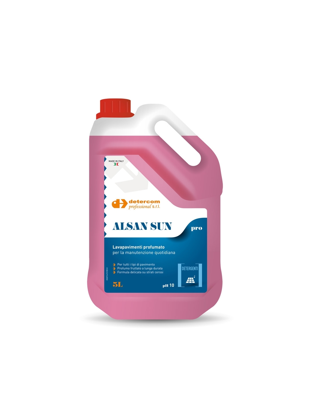 Detergente liquido profumato ideale per la pulizia quotidiana di tutti i pavimenti. Adatto sia al lavaggio manuale sia alle macchine lavasciuga. La sua formula delicata è studiata per salvaguardare gli strati cerosi, mantenendo inalterata la lucentezza naturale del pavimento. Diluire il prodotto in acqua in concentrazione dall’1% al 5%, in base al grado di sporco. Durante l’utilizzo rilascia un piacevole profumo fruttato, che lascia gli ambienti freschi e gradevolmente profumati. Perfetto per la manutenzione ordinaria di gres, gres porcellanato e marmo. pH 9,5-10,05. Tanica da 5 lt.