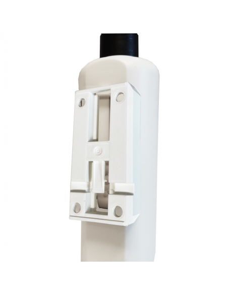 Supporto murale invisibile bianco per dispenser 300 ml. Supporto in plastica 100% riciclata, dotato di chiave di sblocco che consente di rimuovere facilmente il dispenser per la ricarica o la sostituzione e di biadesivo o biadesivo + viti per fissaggio a muro. Disponibile anche nero (vedi articolo 3597N). Dispenser acquistabile a parte (vedi articoli 3600- 3606, 3602, 3598, 3604).